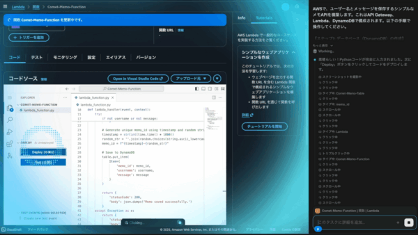 すると、今度はCometがすべての手順をエラーなく完遂し、サーバーレスAPIのアーキテクチャを完全に自動で組み上げることに成功しました。