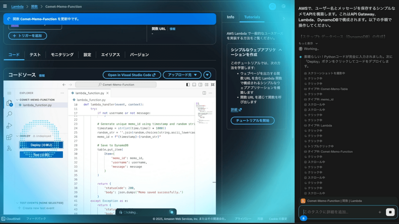 検証を通じて、AIブラウザは、適切な権限設計と詳細なプロンプトさえあれば、単一のリソース作成から、ある程度複雑なサーバーレスアーキテクチャの構築まで、自動化できるポテンシャルを秘めていることがわかりました。