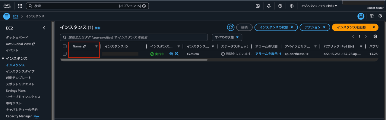 しかし、作成されたインスタンスを確認すると、プロンプトで明示的に指示しなかったインスタンス名は未設定(空欄)のままでした。