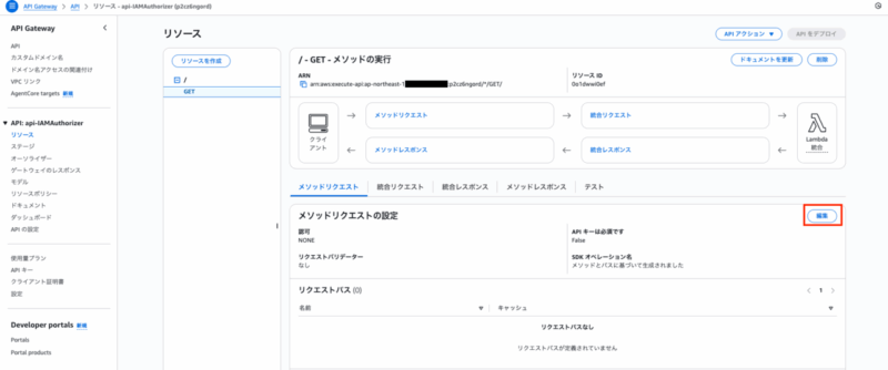 まず、メソッドリクエストの編集ボタンを押下します。