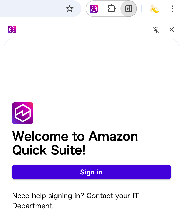 ブラウザ拡張機能をインストールして、Quick Suiteのアカウント名とユーザ名でサインインしてみましょう。