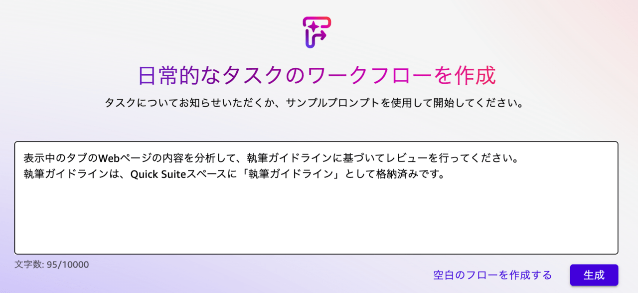Amazon Quick Flowsは、Amazon Quick Suiteの機能の1つで、自然言語で命令するだけで、複数のステップのワークフローを作成することができるものです。