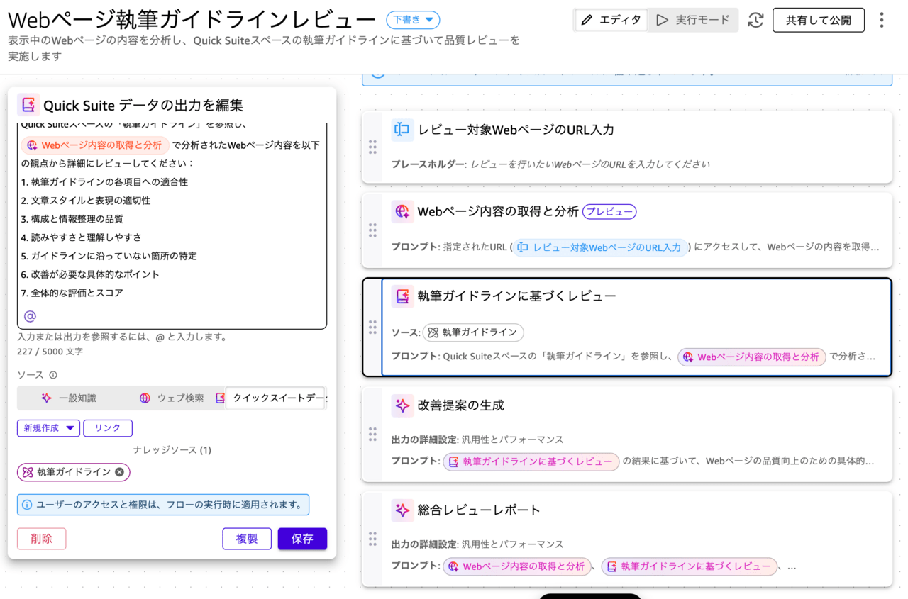 デモとして、ブログ記事がガイドラインに違反していないかどうかチェックするワークフローを作成してみます。