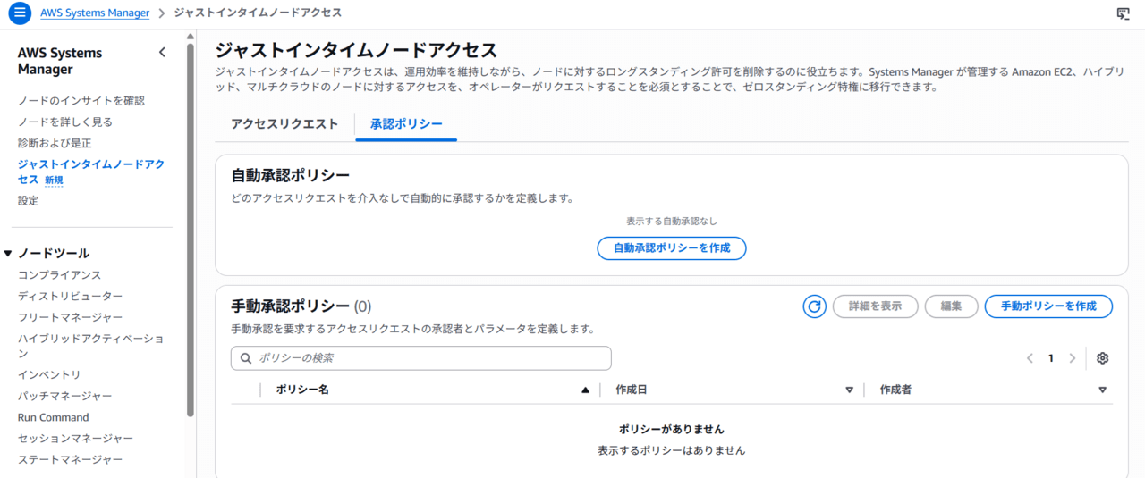 有効化後、承認ポリシーの作成はAWSマネジメントコンソールから実施します。