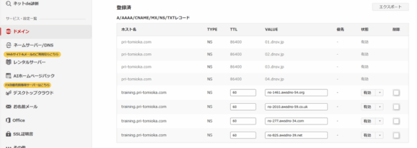 お名前.comで購入したドメインです。 - 共通ホストゾーン:training.pri-tomioka.com