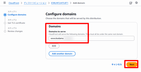 www.example.com (実際は自分のドメイン名) を入力して、Next をクリック