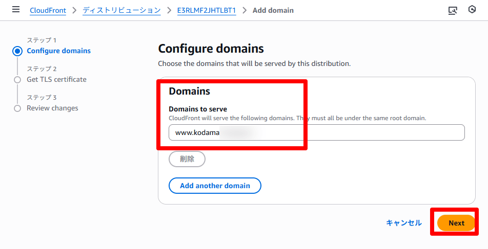 www.example.com (実際は自分のドメイン名) を入力して、Next をクリック