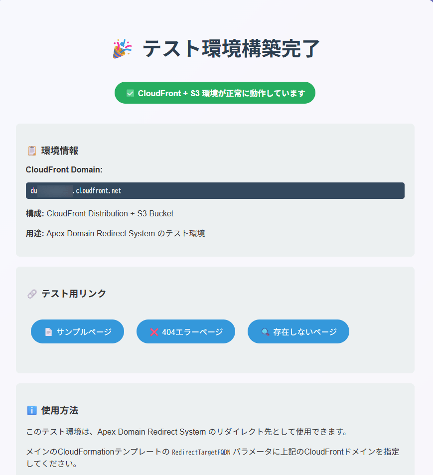 Test Website URL: https://abcdef01234567.cloudfront.net