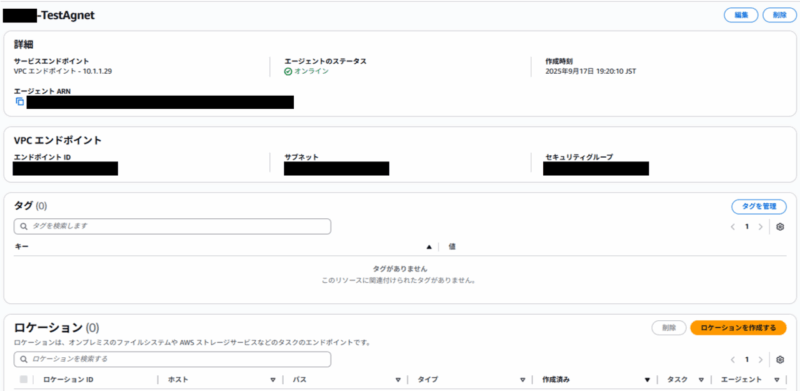 項目を入力すると、画像のようにDataSyncエージェントが作成されます。