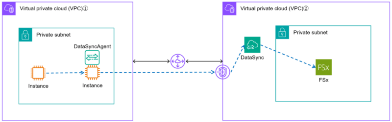 VPC エンドポイント | DataSyncエージェントが、インターネットを経由せずにAWSのネットワーク内でDataSyncサービスと通信するためのプライベートな接続口 |