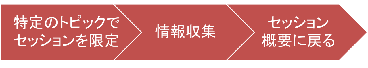 これらによって、聞きたいセッションを内容で選ぶことができる状態になっていました。