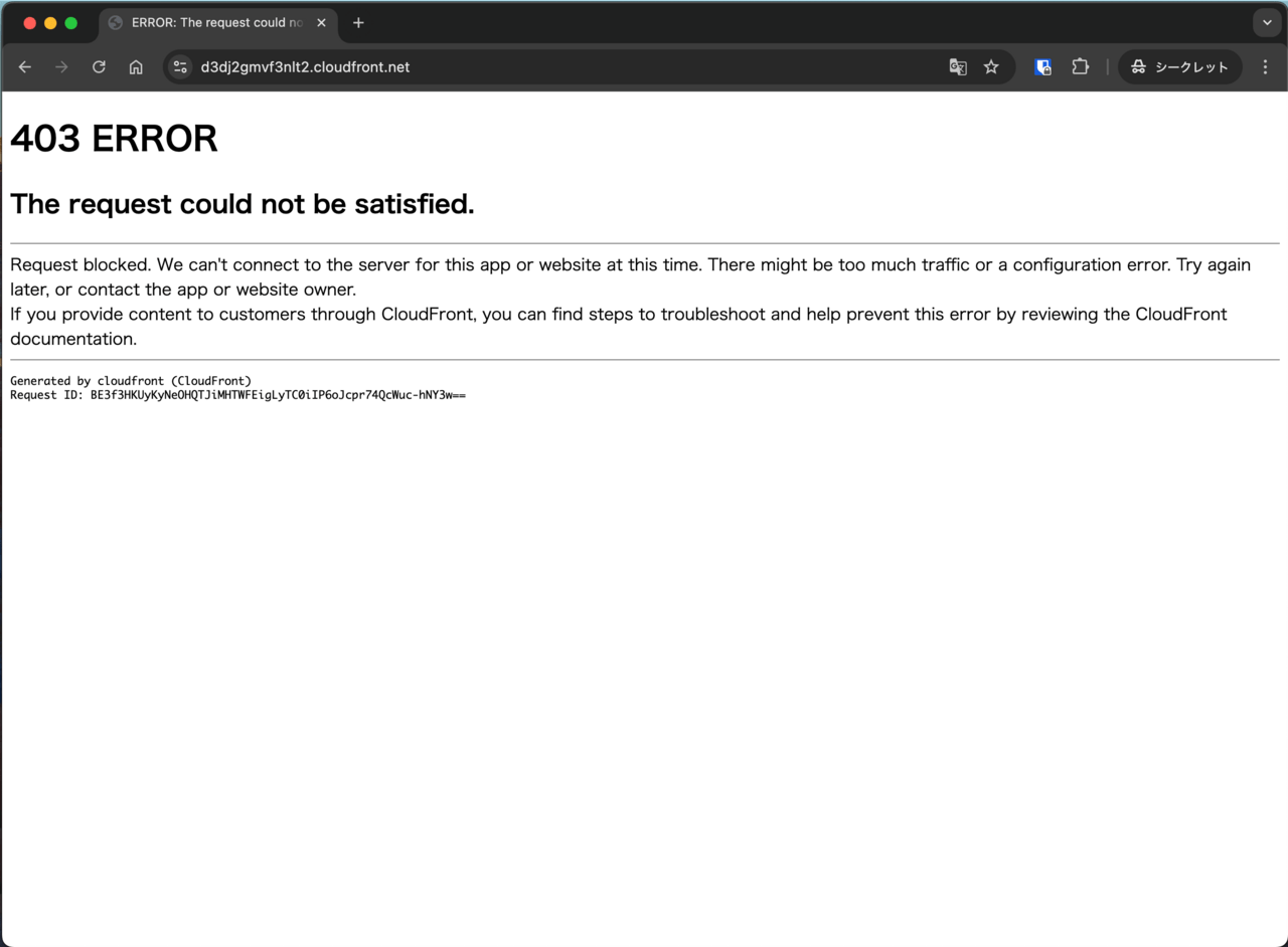 403エラー時のレスポンスである「accessdenied.html」以外は確かに表示できないようになっていますが、いかんせんWAFを通り越してCloudFront(S3)のコンテンツが閲覧できてしまっているのがとてもとても気になってしまったので、調べてみました。