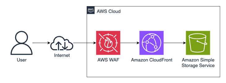 今回はAmazon CloudFrontとAmazon S3を用いた静的コンテンツを公開する基盤を想定し、アクセス保護の目的でAWS WAFを前段に配置することにします。