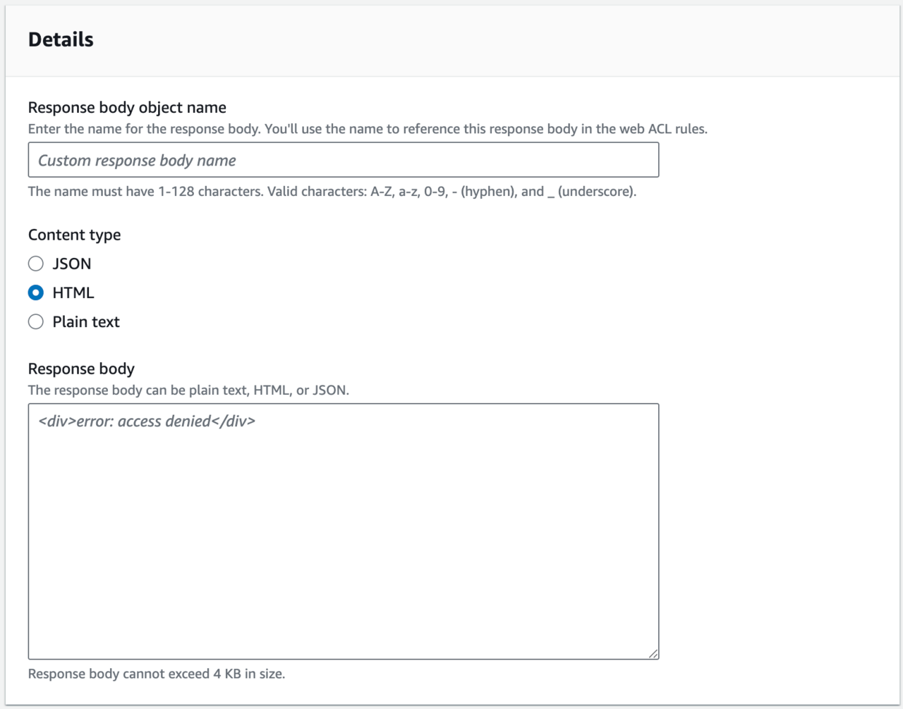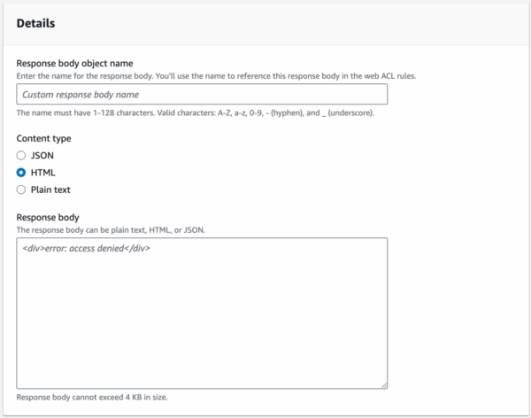 引用:AWS Docment | Sending custom responses for Block actions