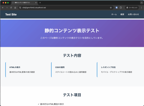 一通り準備ができたら、アクセスしてコンテンツが表示されることを確認します。