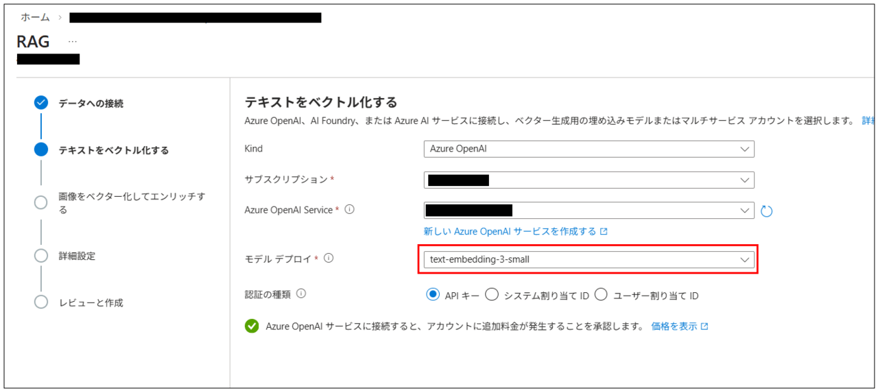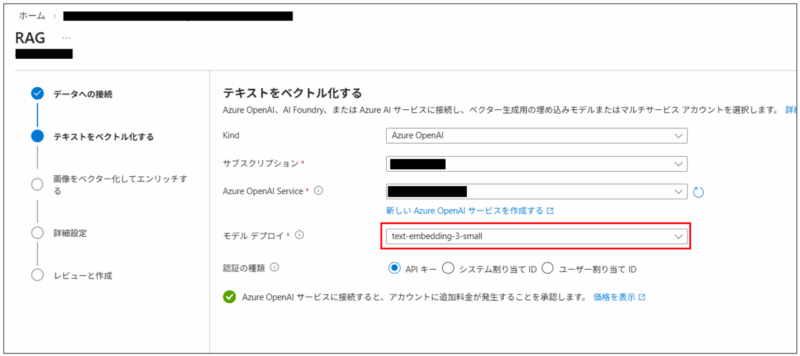 テキストをベクトル化する画面では、デプロイしたEmbeddingモデルを選択する。
