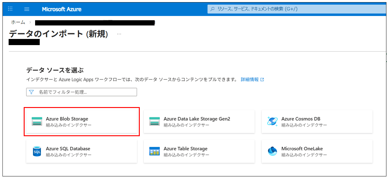 データへの接続画面では、作成したストレージアカウントと対象コンテナを選択する。