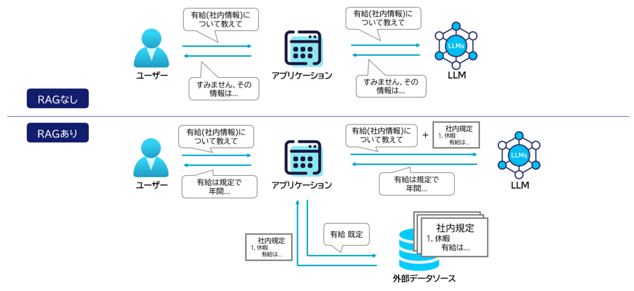 下図にRAGのありなしの比較図を掲載します。