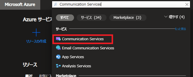 - Azure Portalで「Communication Services」を検索し、移動。