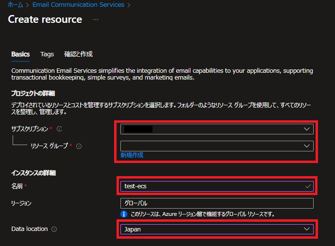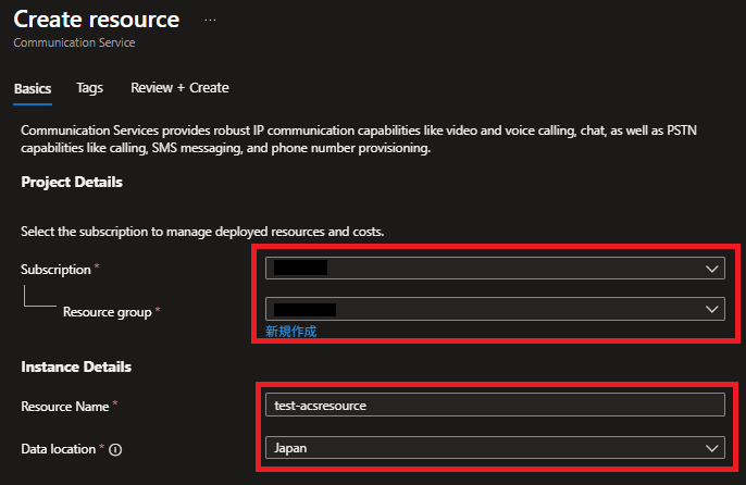 Azure Communication Servicesリソース作成