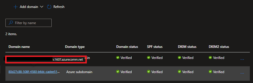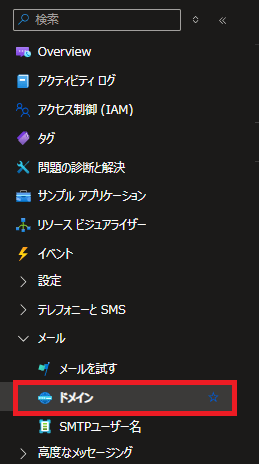 Email Communication Services上だとドメインは、「.azurecomm.net」ですが、