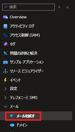 - 作成したAzure Communication Servicesのリソースで「メール」-「メールを試す」を押下。