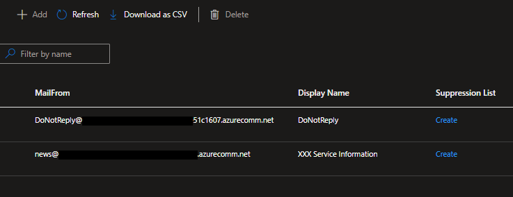 こちらがAzure Communication Servicesからメール送信するときに参照されるメール関連のコンフィグになります。