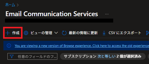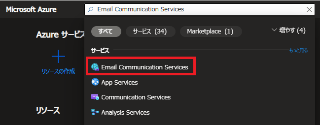 - Azure Portalで「Email Communication Services」を検索し、移動。
