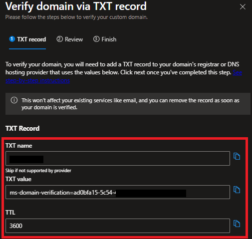指示されたTXTレコードを追加。
