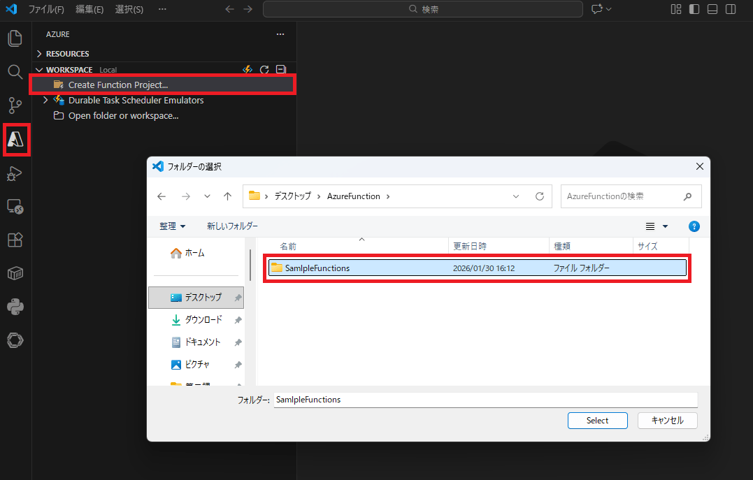 そこから「WORKSPACE」で「Create Function Project…」で作業スペースが作成されます。