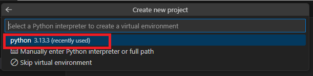 私はPython3.13をインストールしておきましたので、選択肢に出てきています。