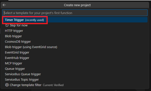 今回はとりあえず動作を見るということで定期実行の「Time Trigger」を選んでみます。