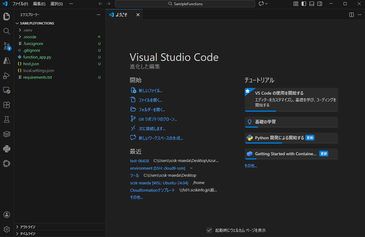 開発環境の準備ができましたらここからAzure Functions内で実行させるPythonコードの開発になります。