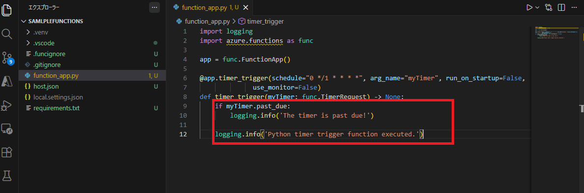 作成されている「function_app.py」の中に処理を実装していくことになります。