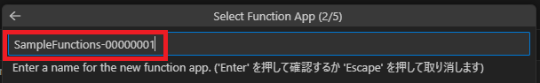 「Create new function app…」でデプロイ先のAzure Functionsを作成しましょう。