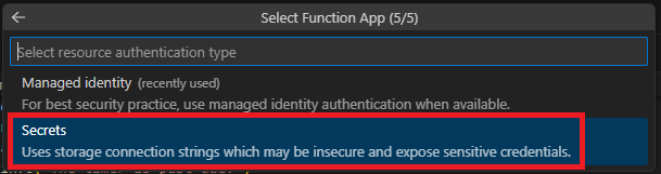 認証方式は「Secrets」を選択します。
