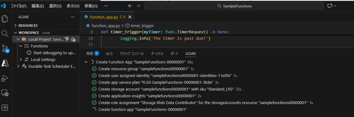設定に沿って自動でAzure Functionsや必要な周辺リソースを作成してくれます。