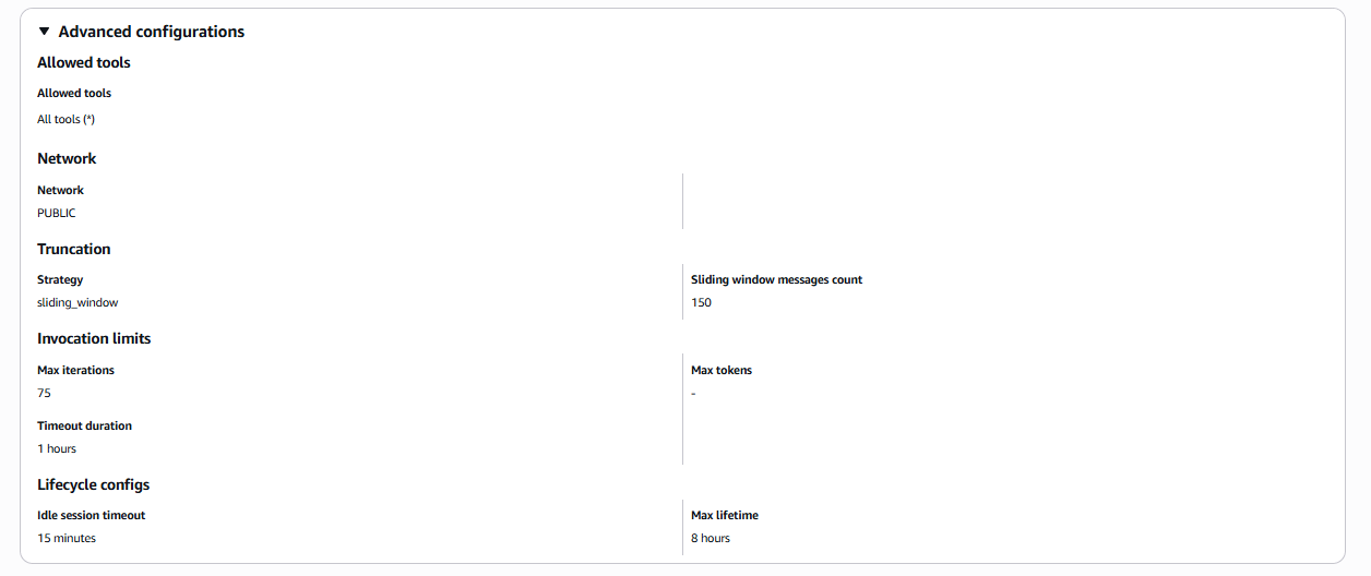 Advanced configurations ツール制限、ネットワーク、トランケーション、実行制限、ライフサイクル
