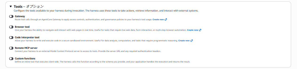 • AgentCore Harnessは「モデル・指示文・ツールを指定するだけでAIエージェントが動く」サービス