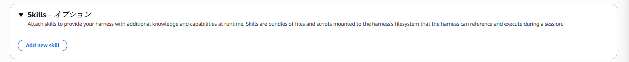スキルはHarnessのファイルシステムにマウントされたファイルやスクリプトのバンドルで、実行時にエージェントが参照します。
