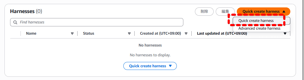 Harnessのページを開くと「Quick create harness」ボタンがあります。
