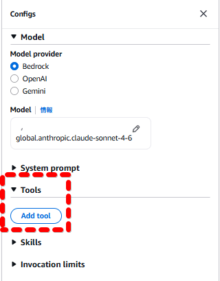 Allowed tools エージェントが使用できるツールの制限。省略すると全ツールが許可される。