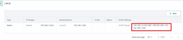 開いた設定ウィンドウの「DHCP Type」を「DHCP Range」とすることで、任意の範囲を指定可能です。複数のレンジを指定したい場合は、「Additional DHCP Ranges」から追加していきます。