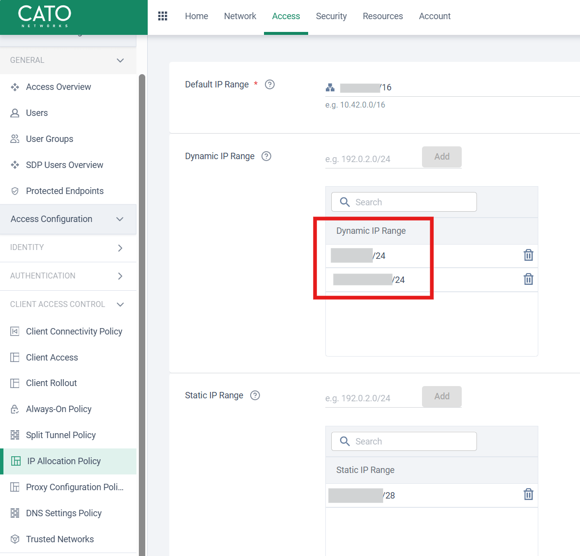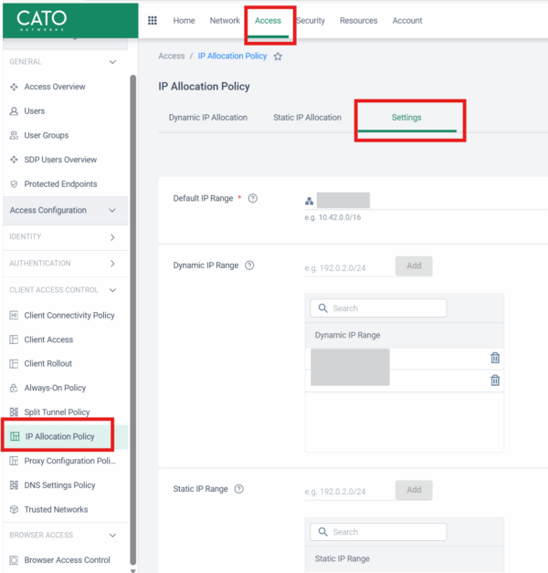 Cato Clientを用いてモバイル接続によってCatoを利用する場合、CMA上で事前に定義されたIPレンジからIPアドレスが割り振られます。DHCPと銘打たれている機能ではありませんが、類似した性質を持つので本記事でまとめて紹介いたします。