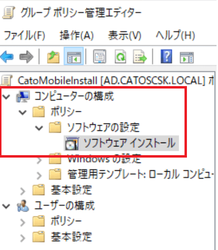 [コンピューターの構成] → [ポリシー] → [ソフトウェアの設定] → [ソフトウェア インストール]