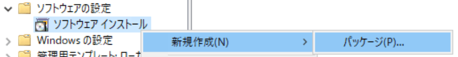 [ソフトウェア インストール]を右クリックし、[新規作成]→[パッケージ]とクリックしてください。