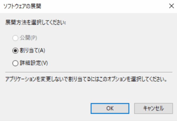 表示されるウィンドウで[割り当て済み]を選択し、[OK]をクリックしてください。