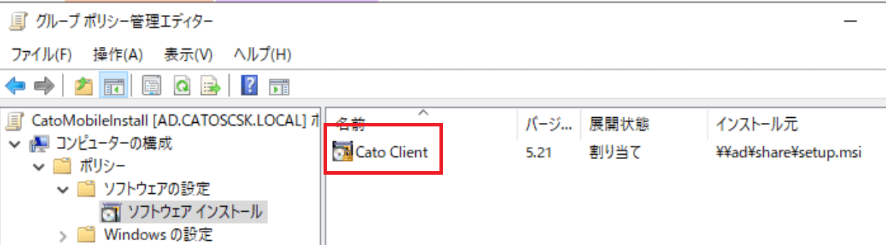 MSI形式のCatoクライアントのインストーラーを利用し、Active Directoryのグループポリシーの機能を使って自動インストールできることを確認しました。