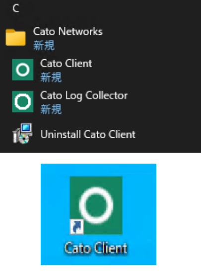 グループポリシーの変更が反映された後、PCの起動時にCatoクライアントが自動インストールされ、スタートメニューやデスクトップに[Cato Client]アイコンが作成されます。