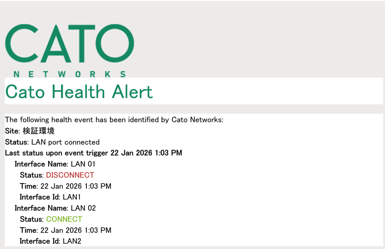 それでは、LANポート障害を発生させて想定通り通知が飛ぶか確認してみます。
